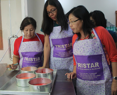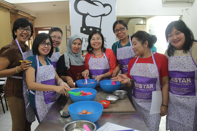 Masih bersama peserta pelatihan dari staff Bank BCA Bali, keseruan kursus Tristar kali ini adalah membuat Ombre Cake. Kepopuleran ombre cake yang memiliki gradasi warna tua hingga muda atau sebaliknya ini masih menjadi trend dan memiliki nilai jual. Penasarankan bagaimana cara membuatnya?
